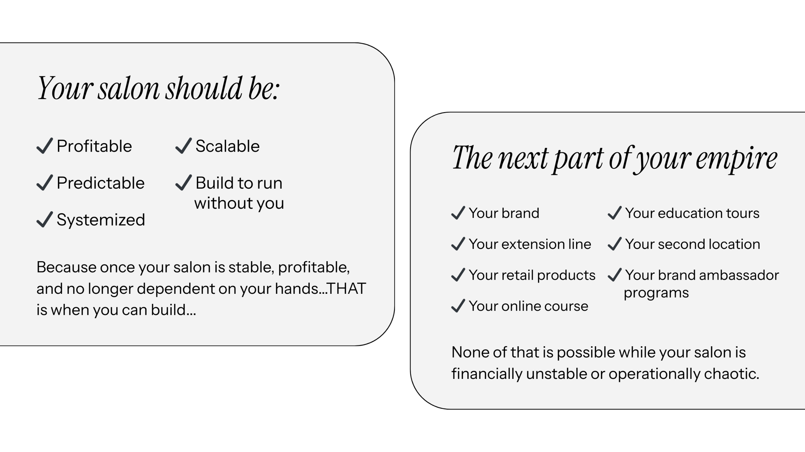 Every salon owner dreams of launching something bigger, an extension line, a retail brand, education, hands-on classes, an online course, a second location, a digital offer, passive income.